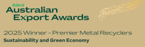 Premier Metals is proud to be the recipient of the Sustainability & Green Economy Export Award 2025, recognising our leadership in advancing sustainable exports and accelerating Australia’s transition to a circular, low-carbon economy.